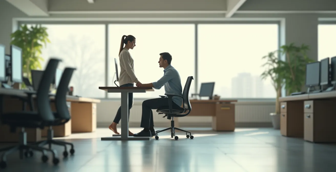 Face à la diabolisation de la position assise, une solution semble avoir conquis le monde du travail : le bureau debout. L’idée est séduisante, mais elle repose sur une fausse prémisse. Remplacer une posture statique (assise) par une autre posture statique (debout) ne résout pas le problème fondamental, qui est l’immobilité. Rester debout des heures durant peut entraîner d’autres maux : fatigue, douleurs aux jambes, varices. Le corps humain n’est pas fait pour une posture unique, mais pour la diversité de mouvement. C’est le changement de position qui est bénéfique, pas la position elle-même.