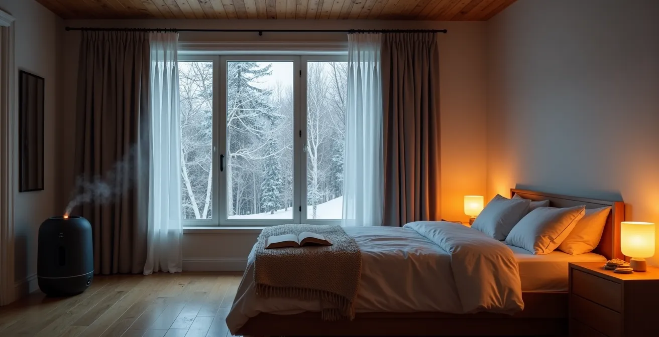 L’obscurité totale est tout aussi cruciale. La mélatonine, l’hormone clé du sommeil, est extrêmement sensible à la lumière. Le moindre faisceau provenant d’un appareil électronique ou d’un lampadaire peut perturber sa production. En été, le soleil québécois qui se lève très tôt peut également devenir un ennemi. Investir dans des rideaux occultants de bonne qualité n’est pas un détail, c’est un outil stratégique pour prolonger la nuit biologique de votre corps. Enfin, pensez à la qualité de l’air : un humidificateur durant les longs mois d’hiver peut contrer l’assèchement des voies respiratoires dû au chauffage et améliorer considérablement le confort nocturne.