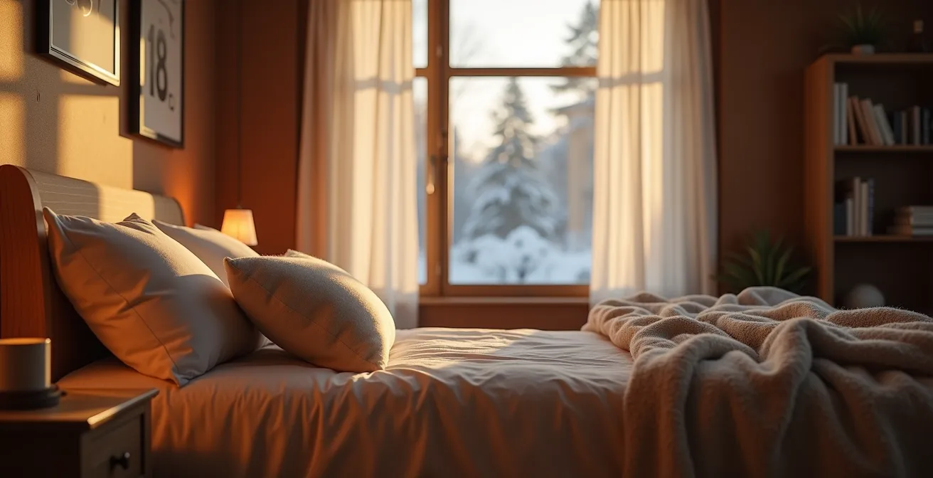 Il ne s’agit pas de grelotter, mais de créer un microclimat propice à l’endormissement. Le principe est de garder le corps au chaud (avec une bonne couette et des bas si besoin) dans une pièce fraîche. C’est ce contraste qui envoie un message clair à votre horloge biologique. Adopter cette habitude est souvent le premier pas, et le plus simple, vers des nuits plus réparatrices.